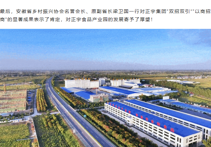 熱烈歡迎安徽省鄉村振興協會名譽會長原副省長梁衛國一行到安徽正宇食品產業園考察