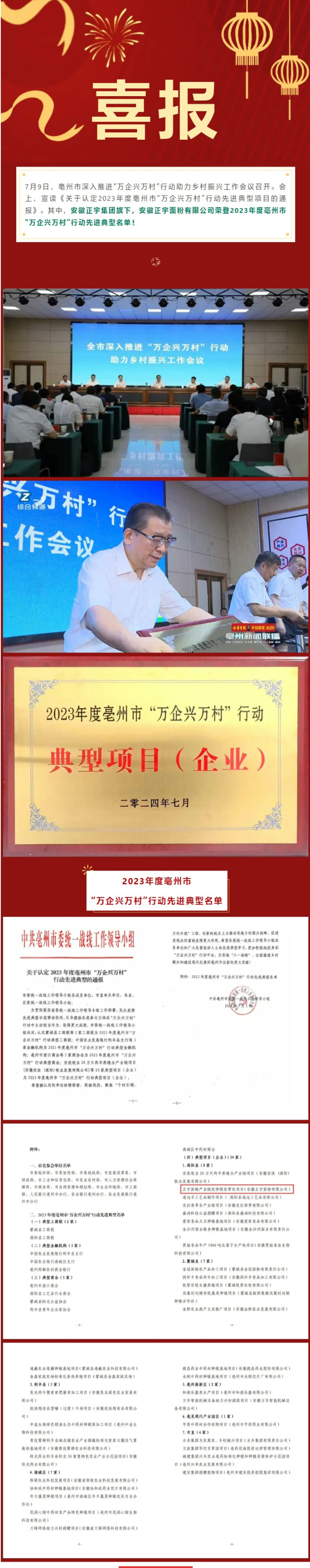證書+1!安徽正宇面粉有限公司榮登2023年度亳州市“萬企興萬村”行動(dòng)先進(jìn)典型名單!
