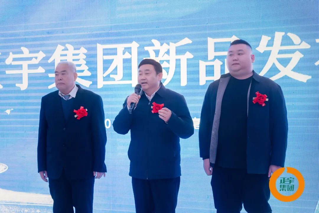 正宇集團董事長曹云宇、總經理曹廣領、副總經理曹恒瑞三代同框,首先登臺致辭。