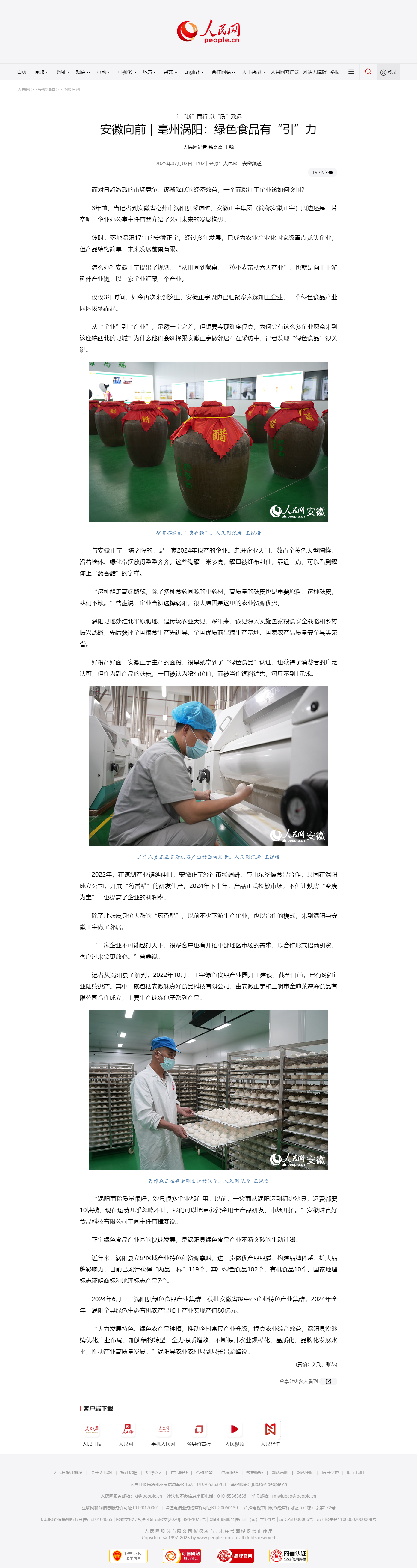近日,人民網(wǎng)發(fā)表文章《向“新”而行,以“質(zhì)”致遠(yuǎn)——安徽向前|亳州渦陽:綠色食品有“引”力》,對(duì)安徽正宇集團(tuán)進(jìn)行報(bào)道。