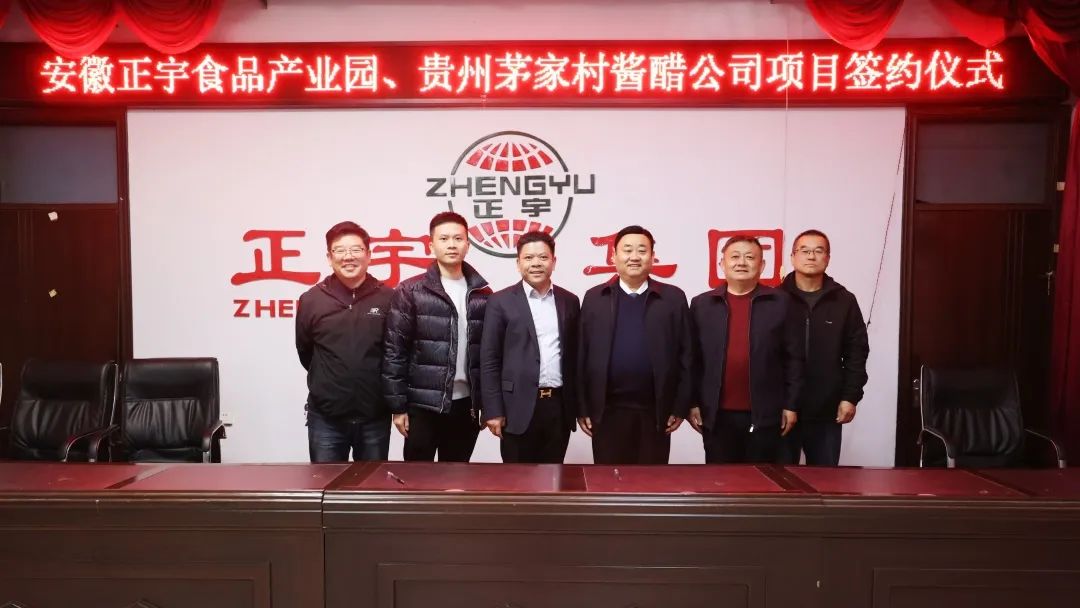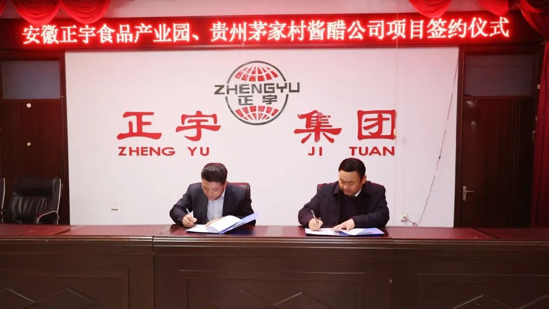 期間,雙方就正宇食品產(chǎn)業(yè)園未來發(fā)展趨勢進行了交流探討。 會上,雙方就正宇食品產(chǎn)業(yè)園項目基本情況、招商進展、未來產(chǎn)業(yè)發(fā)展趨勢等方面進行了深入的交流洽談。 雙方經(jīng)過深入交流與探討,最終達成合作意向,現(xiàn)場簽約項目合作。 (現(xiàn)場簽約) 貴州茅家村醬醋有限公司 貴州省仁懷市茅家村醬醋有限公司是茅臺鎮(zhèn)一家非物質食品文化企業(yè),充分發(fā)掘貴州茅臺鎮(zhèn)的醬文化,其產(chǎn)品“茅家村·醬香三寶”在生產(chǎn)技術、釀造配方,古法獨道。以最有醬味的茅臺古鎮(zhèn)為根,以有“美釀河”之稱的赤水河為本,在與黔北地域文化和民族文化的長期交流、滲透、競爭、融合的過程中,逐步創(chuàng)立了獨特的醬香醋釀制技藝體系,成為人們美味之源,同時也成為遵義市、仁懷市非物質文化遺產(chǎn)項目。其連續(xù)三屆端午節(jié),采曲采藥祭祖師大典暨世界吉尼斯天下第一壇活動,匠心獨運,被中央電視臺發(fā)現(xiàn)之旅全面報道。 產(chǎn)業(yè)園項目簡介 “正宇食品產(chǎn)業(yè)園”(以下簡稱“園區(qū)”)作為渦陽縣政府重點打造的大型食品生產(chǎn)加工產(chǎn)業(yè)園集聚區(qū),園區(qū)規(guī)劃總占地2000畝,位于渦陽縣龍馬工業(yè)園區(qū),主要從事面粉加工、食品生產(chǎn)加工等,圍繞五大功能區(qū),即糧食儲備區(qū)、面粉加工區(qū)、食品加工區(qū)、倉儲物流區(qū)、商務區(qū)等上下游產(chǎn)業(yè)鏈,配套齊全,形成一體化產(chǎn)業(yè)鏈條布局,推動綠色、有機、健康、高端的食品加工產(chǎn)業(yè)集群化發(fā)展,消費者享受從田間到餐桌的全過程可溯源服務,保障產(chǎn)業(yè)后續(xù)發(fā)展壯大。 為了更好的強鏈、補鏈、延鏈,正宇集團以“麥小六”為主題,即一粒麥子長出六個產(chǎn)業(yè),大力發(fā)展種植業(yè)、面粉加工業(yè)、食品加工業(yè)、醋產(chǎn)業(yè)、豆產(chǎn)業(yè)、農(nóng)業(yè)觀光業(yè)六大產(chǎn)業(yè),正宇集團未來五年將充分發(fā)揮各項資源優(yōu)勢,打造百億級食品產(chǎn)業(yè)園。